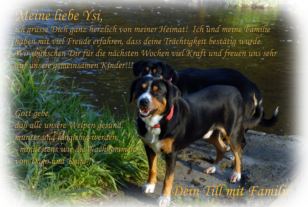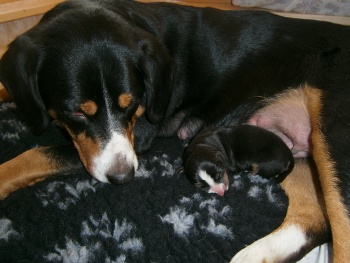 Ysi ist total verliebt in ihre Kleine. Sie ist eine sehr ruhige und fürsorgliche Hundemama!